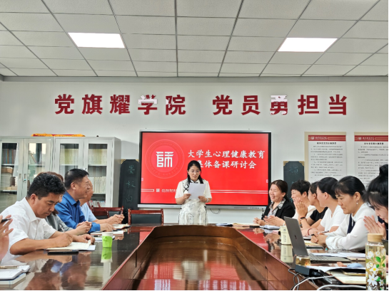 高校大学生心理健康教育课程是对大学生开展心理健康教育的主渠道,为切实提高我校大学生心理健康教育课程教学质量,教师教育学院公共课教研室于2025年9月17日组织集体备课教研活动,本次会议由教师教育学院公共课教研室主任王薇老师主持,教师教育学院领导班子全体成员、学生处副处长张瑞庆、高等教育研究中心副主任郝静出席了本次研讨活动并作发言。