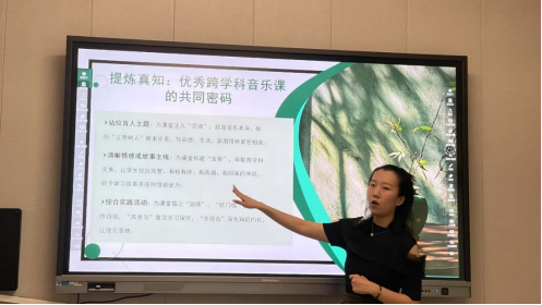 为帮助教师们更好地将理论转化为实践,冯华以新版教材中“一年级下册第三单元《绿色的祖国》”以及三年级下册第二单元《可爱的家》为案例,深入进行剖析,并展示教学设计。在互动交流环节,围绕“如何根据不同学段学生特点设计跨学科教学活动”“跨学科教学中如何平衡各学科内容与音乐学科核心目标”“跨学科教学资源的开发与利用” 等问题展开深入探讨。冯华结合具体教学场景给出针对性建议,并鼓励教师们在日常教学中大胆尝试、不断创新,通过集体备课、教学反思等方式逐步完善跨学科教学模式。