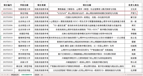 近日,教育部高等学校心理学类专业教学指导委员会公布 2024-2025 年度教育教学改革项目立项名单,保定学院尹朋飞老师主持的《“以生为本” 的心理咨询与治疗—准心理咨询师养成模式的研究与实践》成功获批。