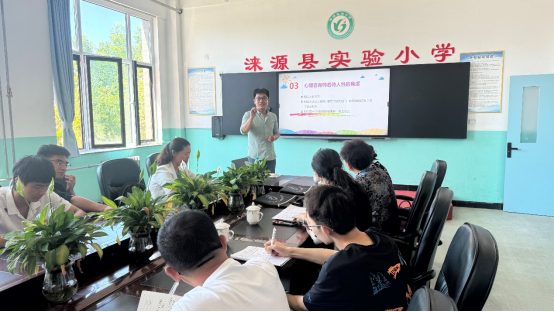 实践团队尹朋飞老师作了 “心理健康教育工作中的咨询师角色” 主题分享。从咨询师应持有的积极心态、科学理念,到看待人性的多元角度;从明确心理咨询师在校园心理支持体系中的角色定位,到介绍实用咨询工具,全方位解析校园心理咨询师工作要点,为在场小学教师开展心理辅导工作提供专业理论与方法指引。