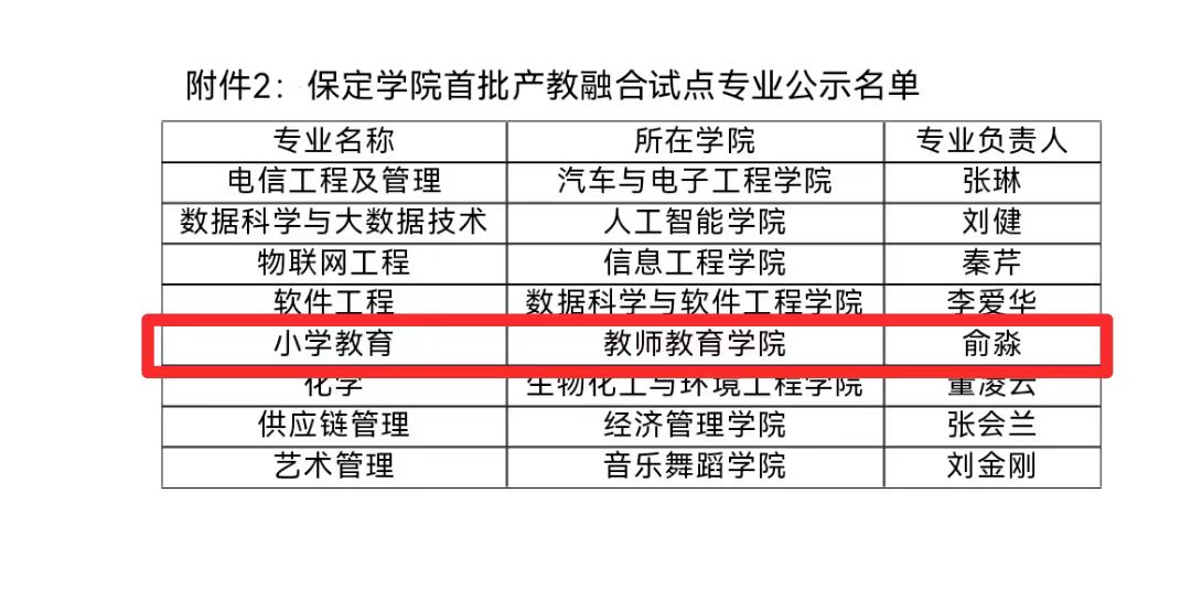 图1 保定学院首批产教融合试点专业公示名单