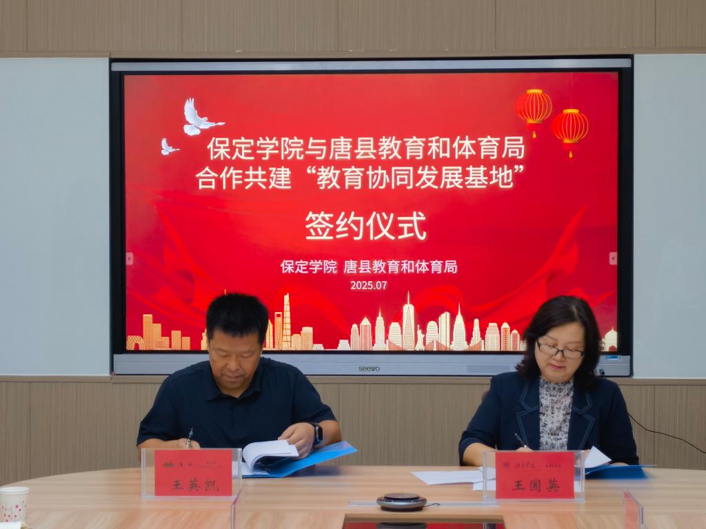 7月2日上午,我校与唐县教育和体育局合作共建教育协同发展基地签约仪式在行政楼205会议室举行。