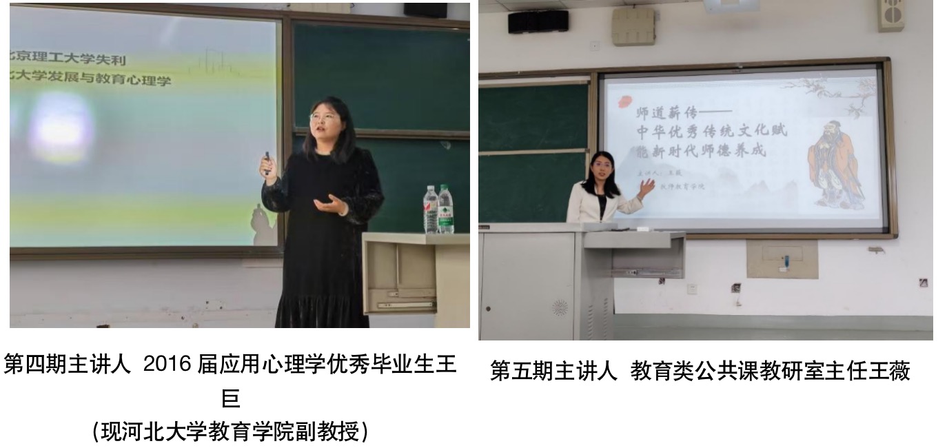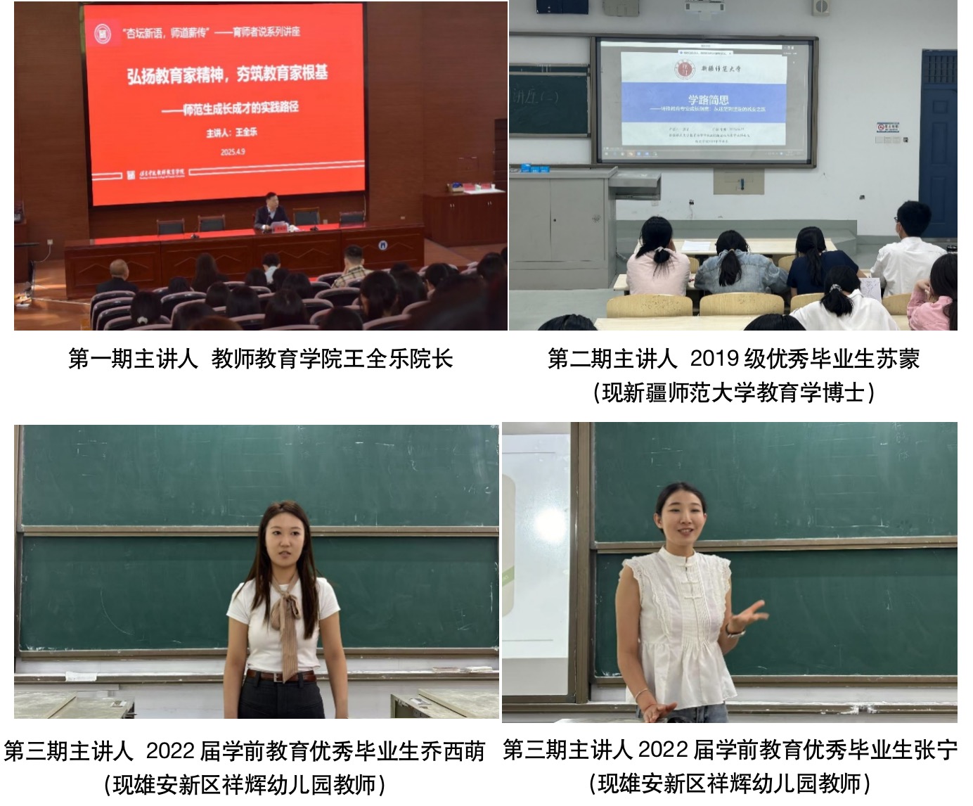 举办“杏坛新语,师道薪传”育师者说系列讲座5场,特邀王全乐院长、王薇教授以及各专业优秀毕业生,共同搭建起一座连接教育理论与实践的桥梁。讲座中,院长立足教育发展前沿,深入阐释“教育家精神”的时代内涵与核心要义,从宏观视角解读新时代教师的使命担当与育人方向;王薇教授专注中华传统文化,聚焦师德建设,展现师者匠心与育人智慧;优秀毕业生们作为从校园走向教育岗位的亲历者,带来了一线教学的真实感悟,讲述如何将在校所学转化为教育实践,如何在职业成长中坚守初心、传承师道,为在场听众提供从学生到教师角色转变的生动参照。