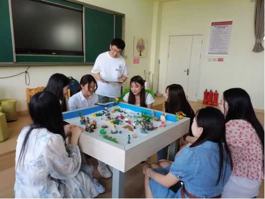 学生进行团体心理沙盘实训